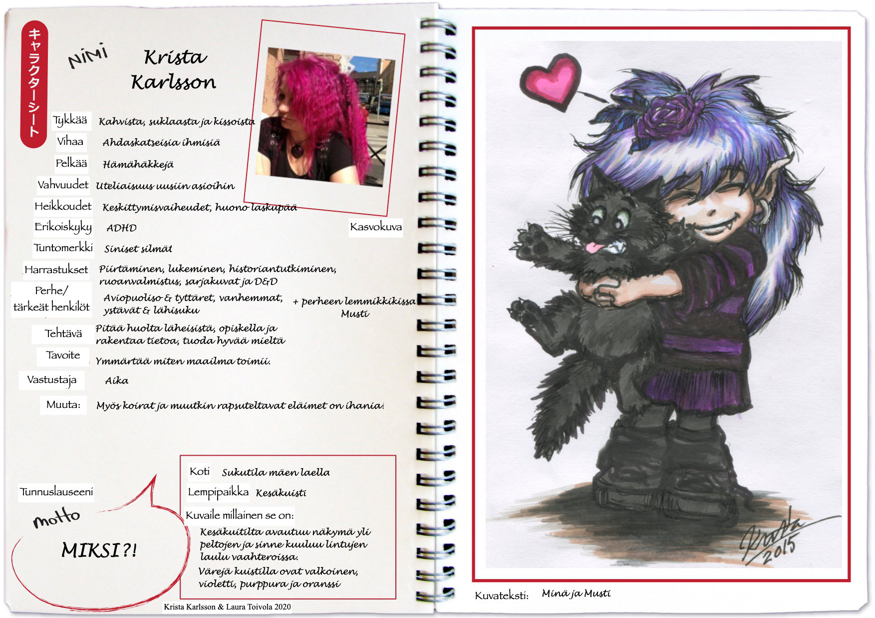 Krista Karlsson on kasvatustieteen kandidaatti, joka on vuodesta 2007 opettanut mangapiirtämisen kursseja Nurmijärven opistossa.