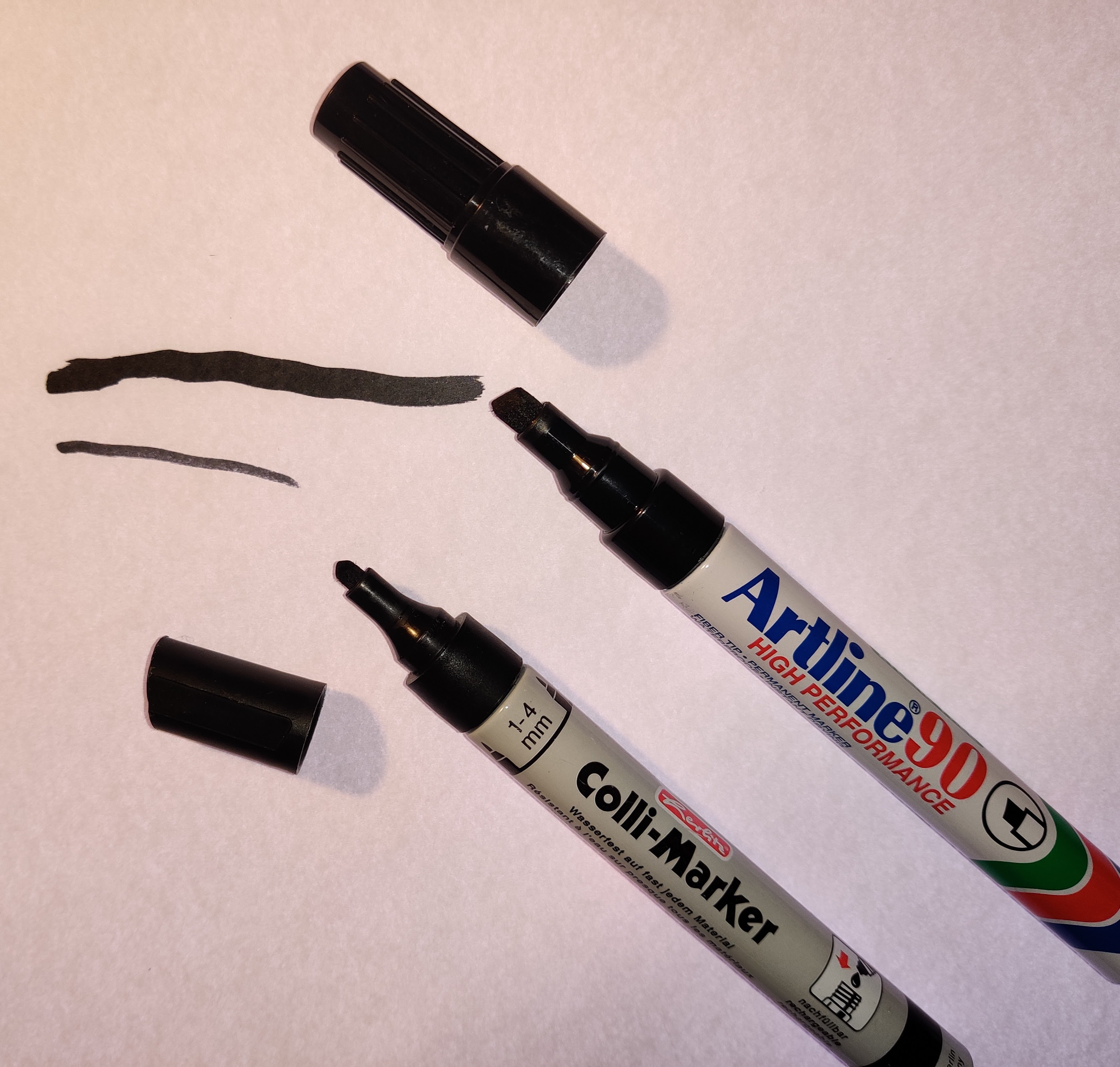 Helppoja vaihtoehtoja ovat myös esim. kuvan viistokärkinen ja pyöreäkärkinen tussi tai ylemmässä kuvassa näkyvissä olevien kalligrafiatussien paksukärkisemmät tussit.